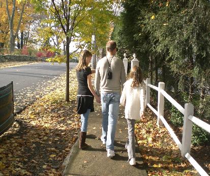 Taking a post-dinner walk with the girls, Thanksgiving 2007