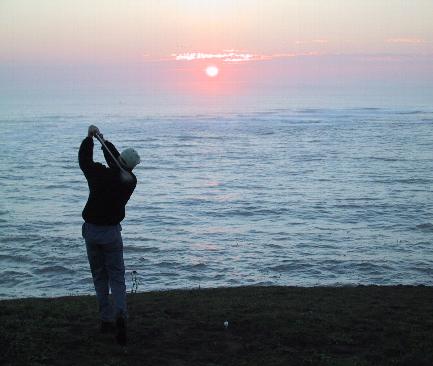 Golfing at sunset at the Moet Cup in San Francisco Bay, 2003